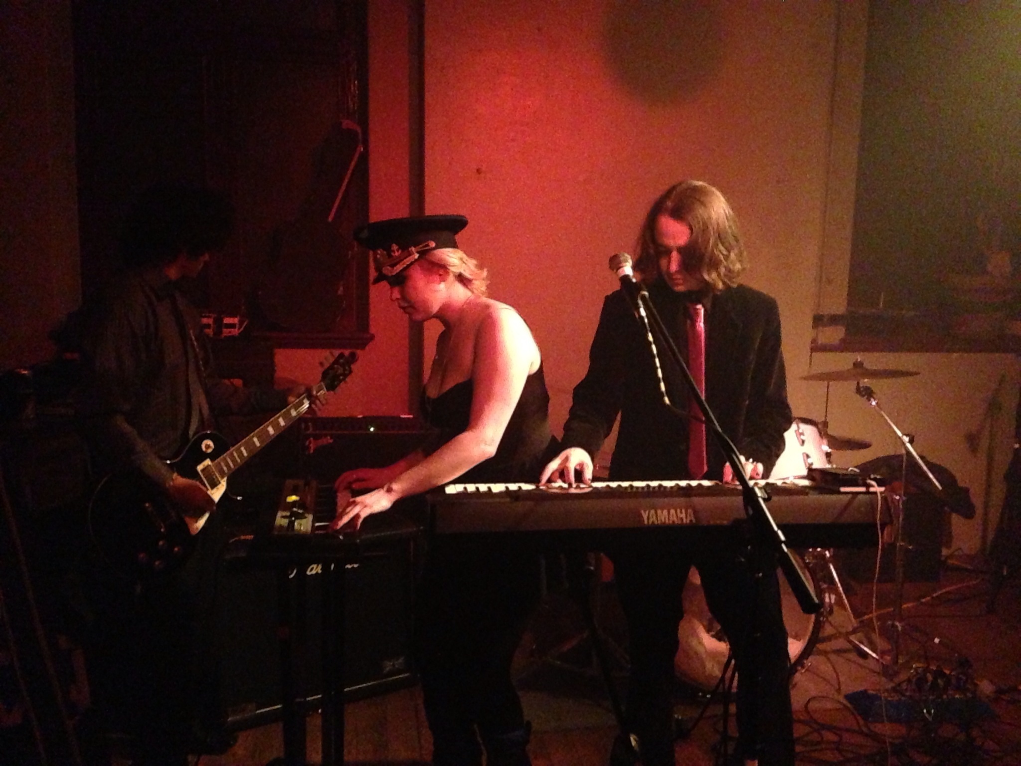 Front man James Histed led the way, it’s the first time I’ve seen him play without a low slung guitar over his shoulder, he moved, he swayed, he even leapt around the stage, in-spite of the rather heavy looking shoe wear, cool flares and velvet jacket trying to drag him back down to earth. I know James is a great admirer of Jarvis Cocker, and some of his moves owe much to his idol, but vocally he puts me in mind of a modern day incarnation of Peter Perrett crossed with Howard Devoto, he has great vibrato quality to his vocal and an ability to go from spitting out words to an almost operatic squeal. But the vocals truly hit the highs when the backing of Maija comes into play at key points in the songs. On bass, hiding under the peak of his cap Zac Yeo beats out the sort of bass lines any bass player would love to get their hands on. In the left corner, caged behind amps, keyboards and PA speakers was Raji, belting out some snarling guitar riffs, I see now why he’s been hemmed in. If I new the drummers name it would be here too as he managed to hit rhythms that both complimented and were an integral part each song, without trying to dominate, drumming as it should be.